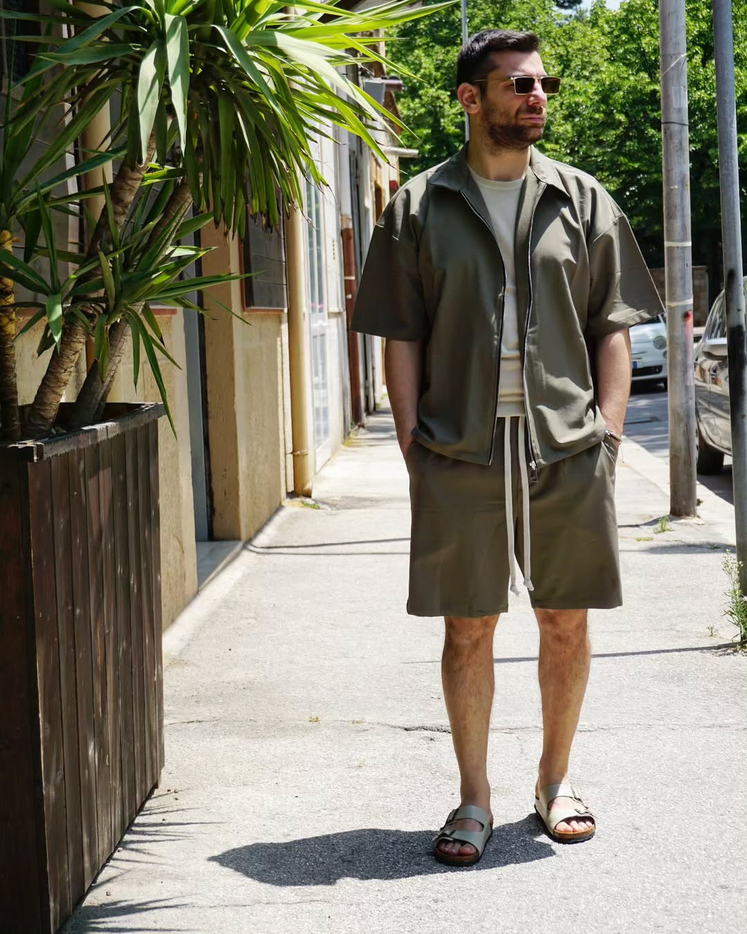 Il completo è perfetto per chi cerca un look elegante e confortevole. Realizzato con tessuti comodi e freschi, questo completo comprende una camicia e un pantaloncino regolare, perfetto per ogni occasione. Indossa questo completo e sentiti a tuo agio tutto il giorno.