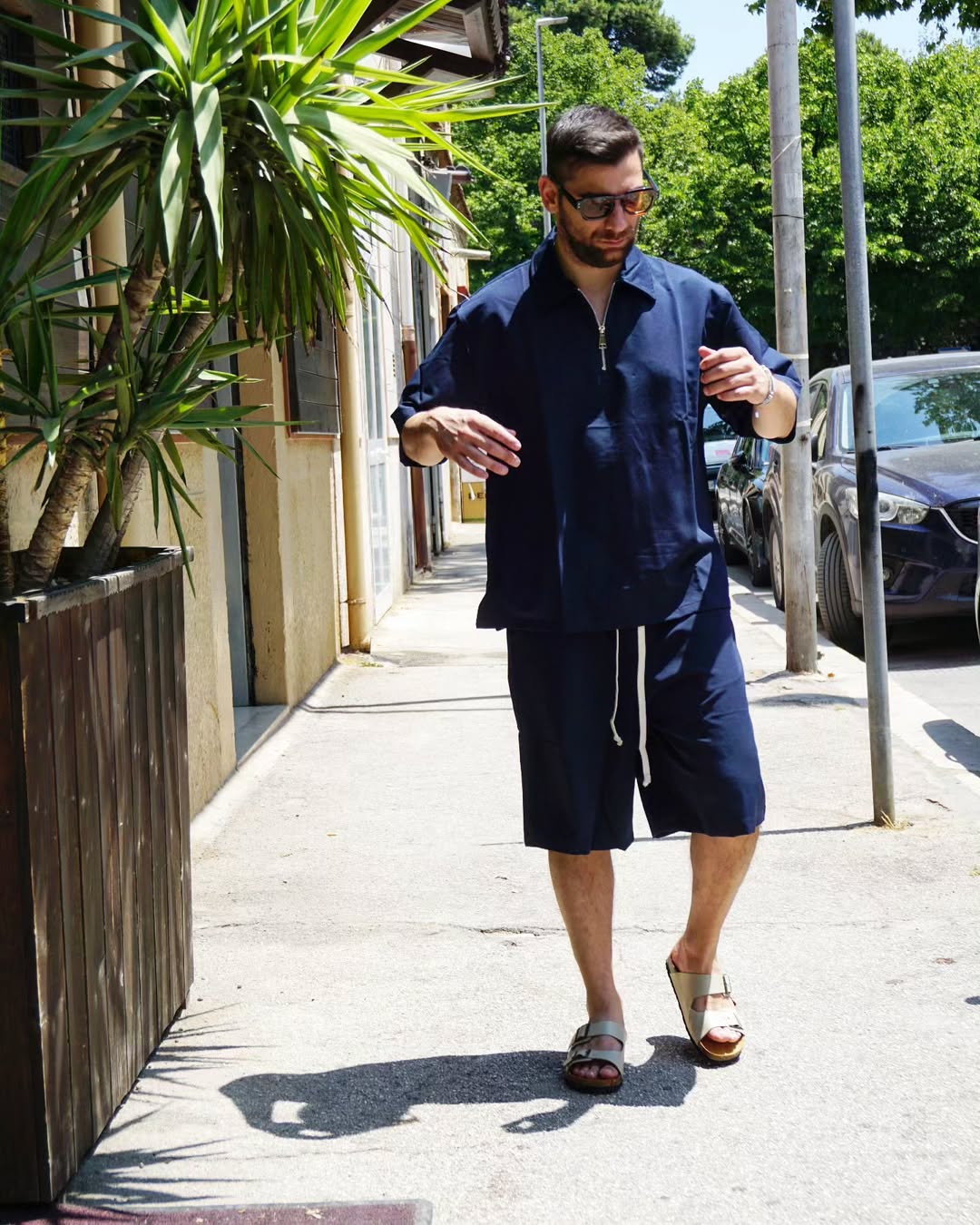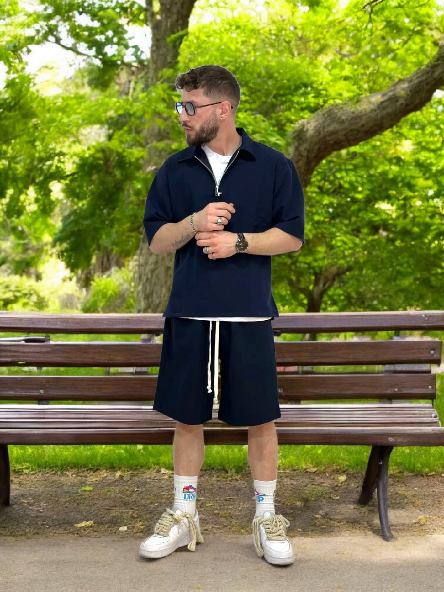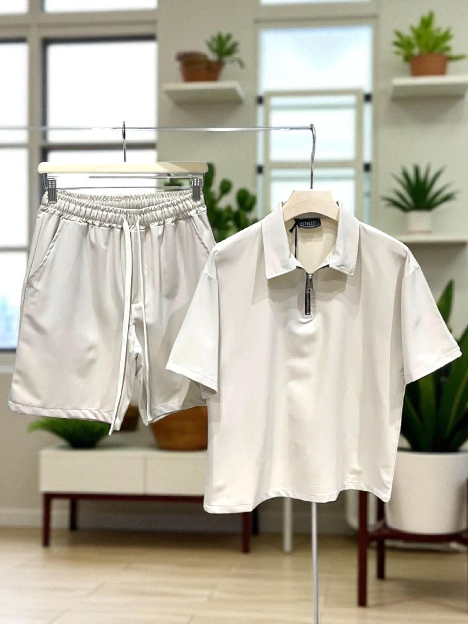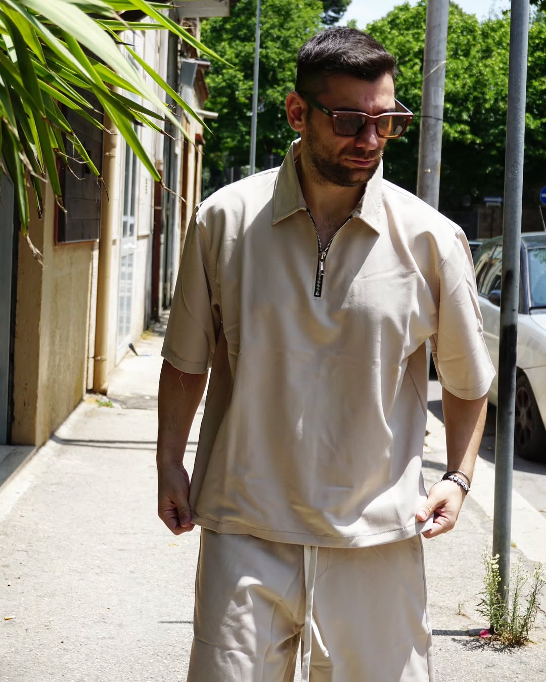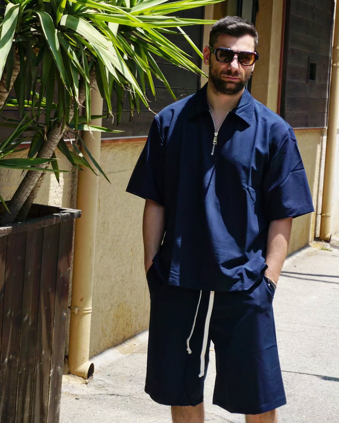 è l'abbigliamento perfetto per la stagione estiva. Il suo modello veste regolare e la vestibilità adatta garantiscono un look comodo e sofisticato. Il tessuto è estremamente morbido, ideale per le calde giornate. Il modello indossa una taglia M, con un'altezza di 1.77m e un peso 77kg
